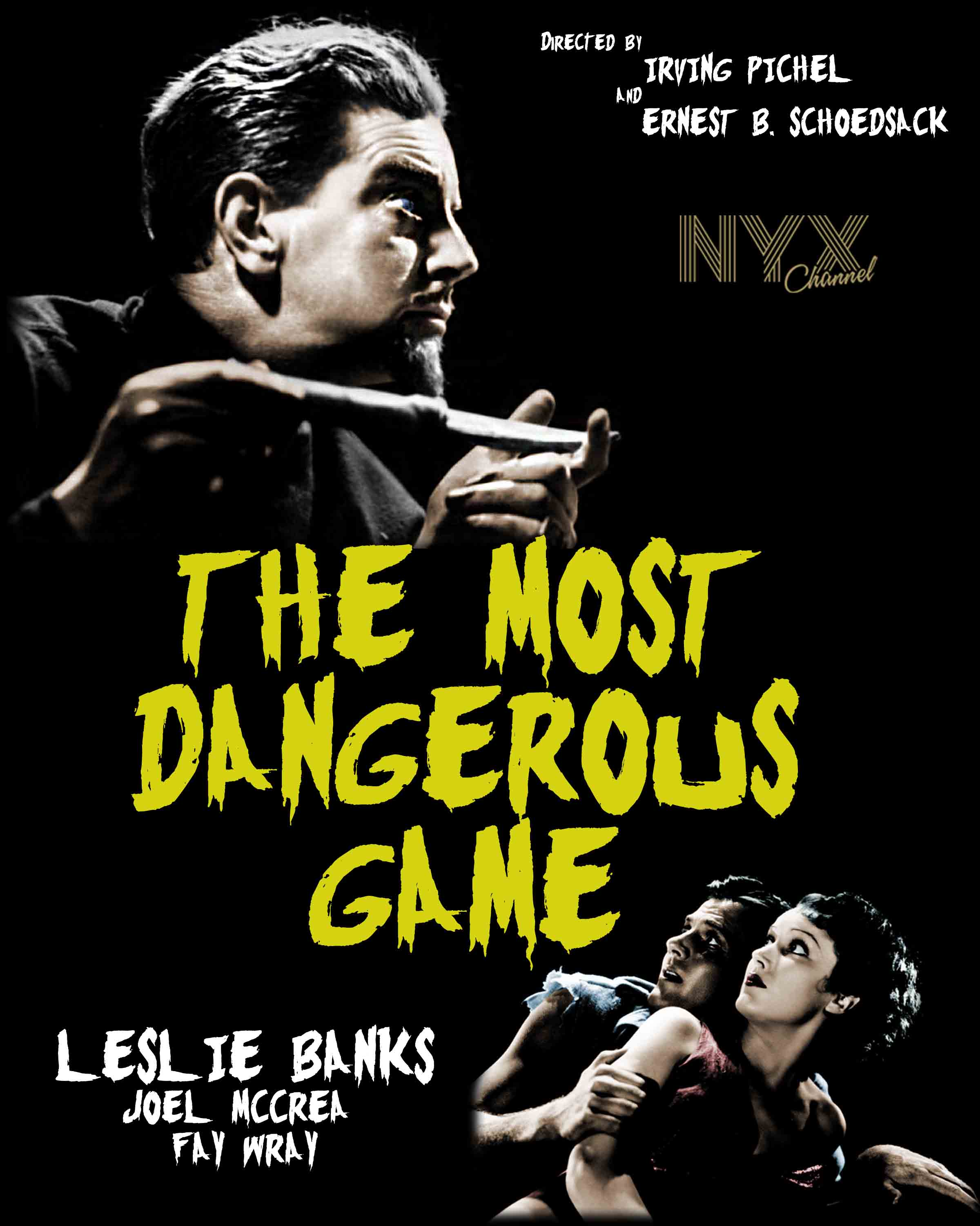 Un barco navega por aguas turbulentas hasta golpear con un arrecife frente a una pequeña isla. El único superviviente del naufragio es Bob Rainsford, un aventurero dedicado a la caza mayor. Rainsford consigue adentrarse en la isla hasta toparse con una misteriosa fortaleza. Allí es recibido por el Conde Zaroff, quién le presenta a sus huéspedes, los hermanos Eve y Martin Trowbridge, supervivientes de un naufragio previo. Zaroff revela su pasión por la caza, animando a Bob a jugar con él a una nueva modalidad a la que dedica su tiempo en la isla. Poco después, Eve y Bob comienzan a sondear la fortaleza preocupados por la desaparición de Martin, hasta encontrar la sala de trofeos de Zaroff, repleta de cabezas humanas y donde se halla el cuerpo inerte de Martin. Zaroff los descubre y comunica a Bob que será el próximo jugador. El juego consiste en una cacería en la que Bob es la presa y Zaroff el cazador, de modo que si Bob consigue sobrevivir hasta el amanecer será puesto en libertad. En compañía de Eve, Bob se adentra en la jungla mientras Zaroff inicia la persecución con sus perros. Pese a los ingenios de Bob por eludir a Zaroff, éste acaba por alcanzarlos, disparando a Bob poco antes del alba. Sin embargo, cuando regresa a la fortaleza, Zaroff descubre que Bob sigue vivo, y éste acaba matando al conde y finalmente consigue huir de la isla con Eve.